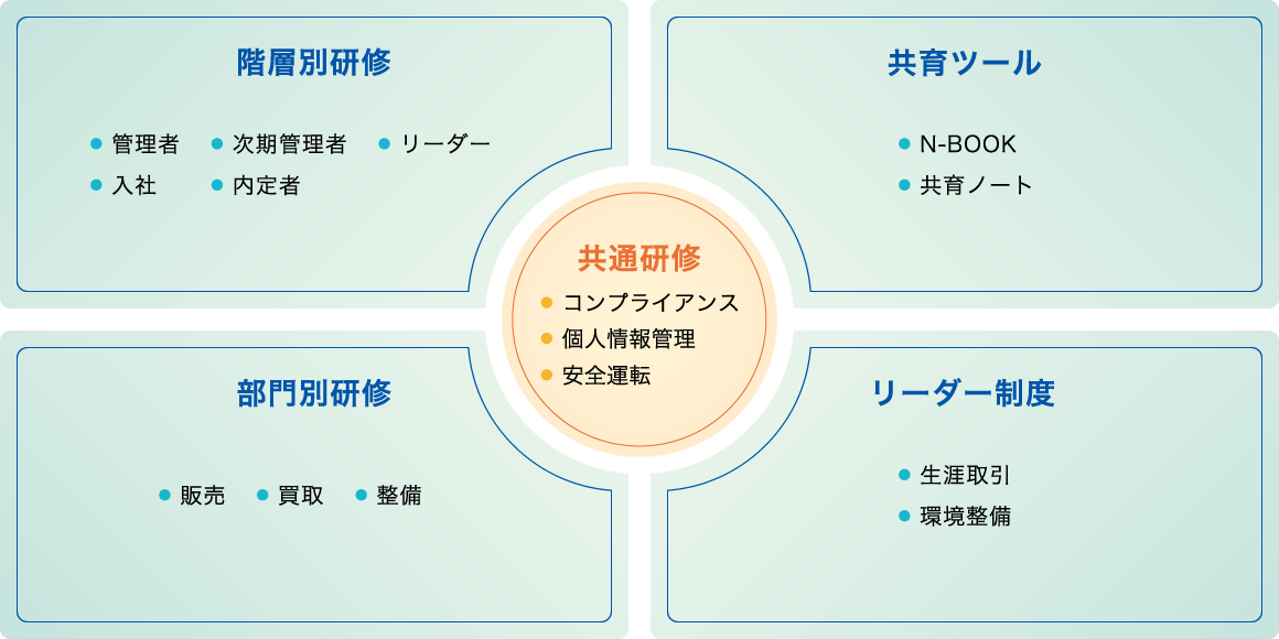 そのために、全店共通のマニュアルであるN-BOOKの整備や、各種研修制度の拡充を行い、スキルアップ・キャリアアップを促進しています。